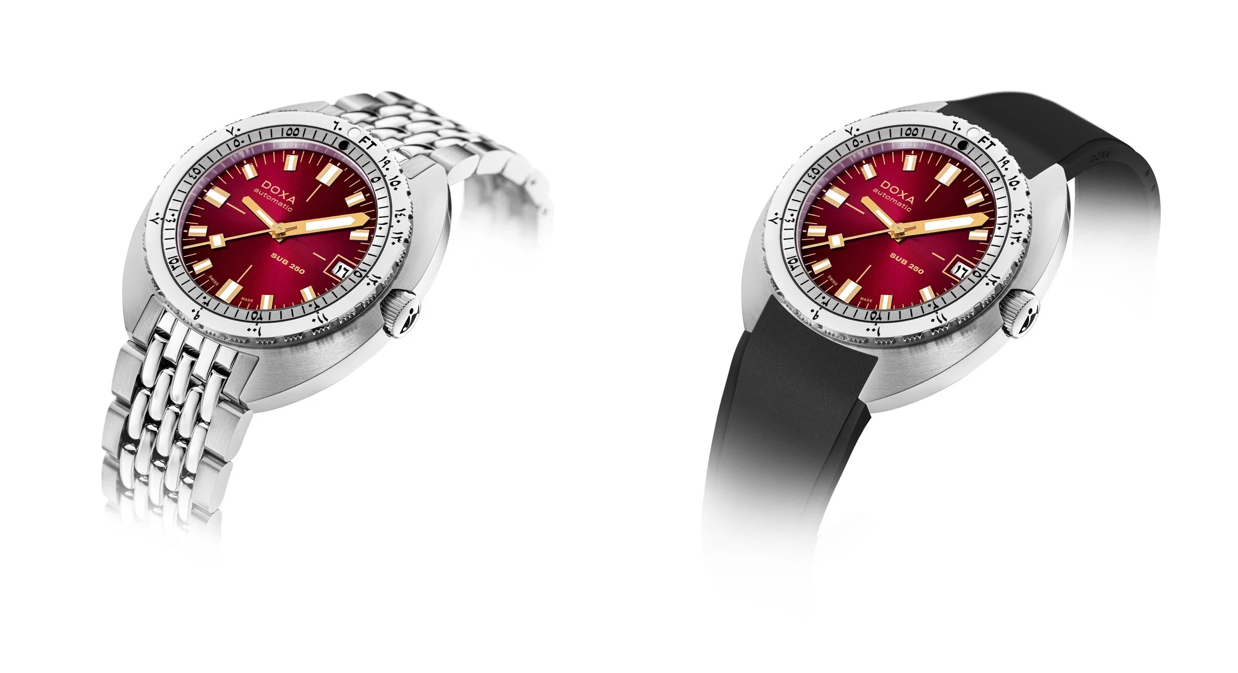 At first glance, this SUB 250 feels familiar. The cushion-shaped stainless steel case, the iconic “beads of rice” bracelet, and the no-nonsense tool-watch functionality all stay true to DOXA’s dive pedigree.